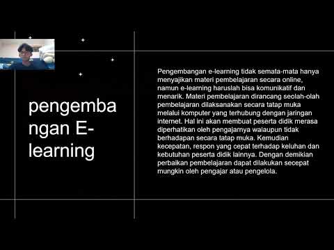 E-learning adalah perangkat pendidikan berbasis komputer atau sistem yang memungkinkan anda untuk bekerja dimana saja dan kapan saja saat ini learning dapat disampaikan melalui internet. Tetapi di masa lalu E-learning hanya dapat disampaikan melalui menggunakan metode berbasis komputer seperti video warning juga merupakan model pembelajaran yang mencangkup ragam media penyampaian bahan ajar dan konten melalui situs di internet dengan menggunakan multimedia ragam media yang dapat menyampaikan pesan teks grafik audio video animasi. E-learning juga dapat digunakan sebagai salah satu upaya dalam meningkatkan pengetahuan dan kinerja. Melalui penggunaan teknologi internet siswa yang menggunakan e-learning dapat mengontrol isi urutan belajar, laju belajar, waktu dan media yang dapat memungkinkan mereka untuk menyesuaikan pengalaman belajar mereka dalam memenuhi tujuan belajar. E-learning juga disebut sebagai pembelajaran berbasis web, pembelajaran dalam jaringan online, pembelajaran yang terdistribusi dengan intruksi yang dibantu oleh komputer atau disebut juga dengan pembelajaran berbasis internet.